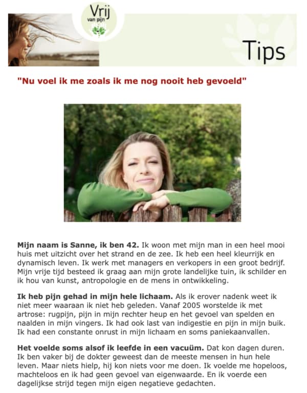 De Vrij van Pijn Tips is de nieuwsbrief van Vrij van Pijn